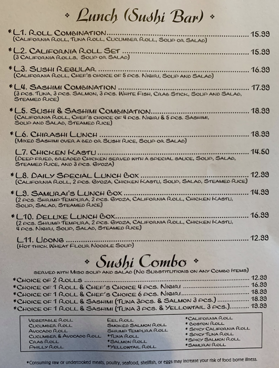 The Japan Samurai menu offers a balanced selection of Japanese classics in a welcoming, down-to-earth setting. Whether you're stopping by for a casual lunch or a relaxed dinner, the menu blends comforting hibachi dishes with fresh sushi options, creating a variety that suits different tastes and occasions.