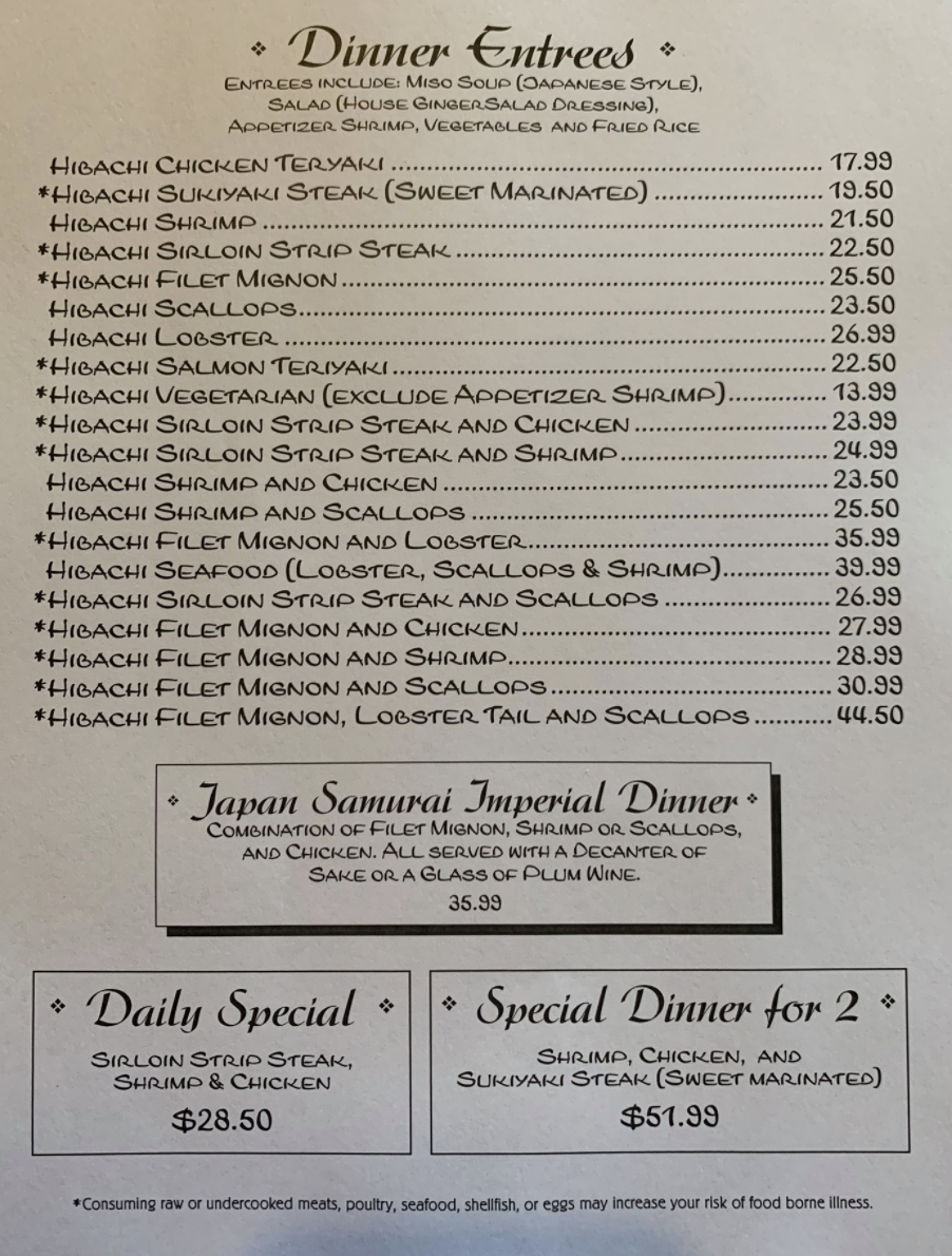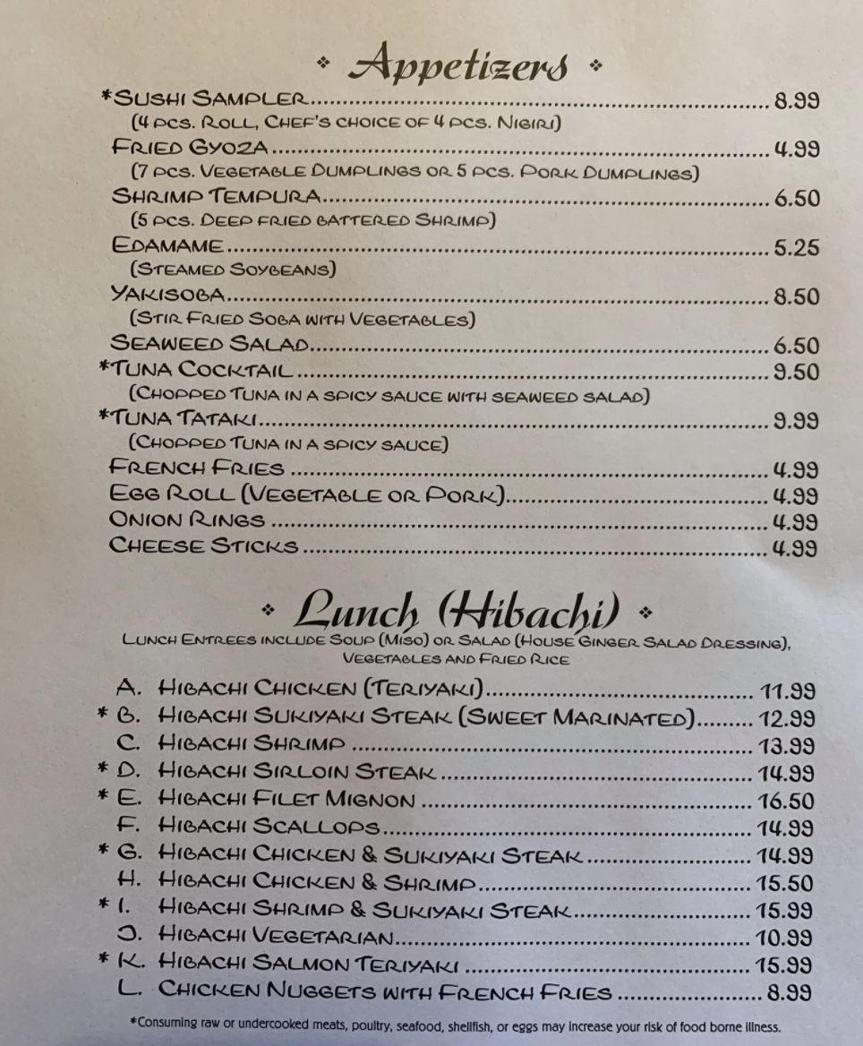 Many visitors appreciate the menu's alignment with the warm, cozy atmosphere of the restaurant—a place where the focus is on genuine flavors and a friendly vibe rather than formality. Meals often unfold alongside attentive service and the entertaining flair of hibachi chefs, making it a comfortable spot to gather with friends, family, or coworkers without pretense.